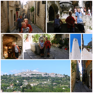 I franske småbyer kan man egentlig bare gå og rusle og nyte... Nyte livet, god mat, vin, et marked... Vi var innom flere småbyer, men den største småbyen i nærheten av der vi bodde heter Draguignan (draginjå). Der spiste vi lunsj og opplevde turens første styrtregn! En annen liten by var Lorges (lorzj) Her traff vi slutten av et marked og en koselig bakhage der vi spiste lunsj. Her var det flere av følget som hadde sitt første møte med snegler som måltid! Noen prøvde og likte, men Peder prøvde flere ganger ut og inn av munnen men til slutt kom snegla ut igjen og han ga opp...